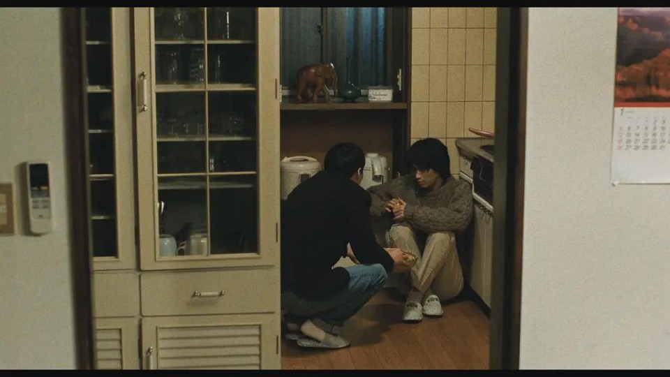在主人公面试的那场戏中,当他面试失败后,后景突然就爆发了一场“凶杀”。而这个镜头刚好是在男主侃侃而谈自己的才华被拒绝后,于是这场“凶杀”也就成为了对于主人公内心的昭示。黑泽清没有利用任何的音响效果与蒙太奇手法,只是在一个完整的镜头段落中加入了这么一场看似毫无关系的异质段落,构建了日常生活中的负空间。