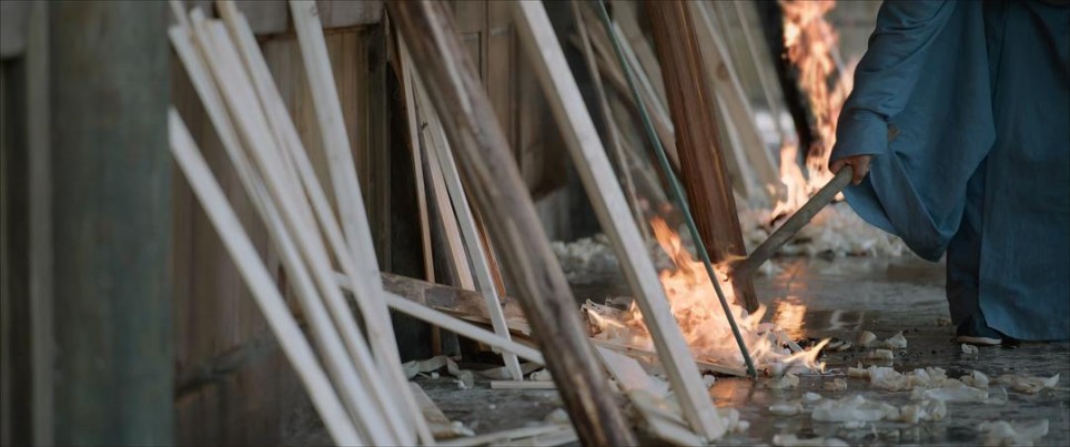老师傅要自杀,直接泼酒到木房就行了, 但本剧竟然画蛇添足架上木棍木屑,