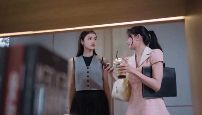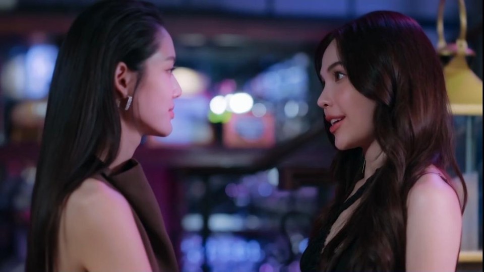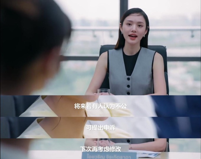 酒吧2场景,是Mae在放下直女思维去寻找答案前最后一道心理防线被击溃的时候。经历之前种种,不论是潜意识中对Ai的迷恋,还是事业心促使她以身入局,如今剩下的最后一丝疑虑,便是Ai愿不愿意为她违抗父命。一方面,Mae潜意识里不希望自己是Ai经过的万花丛中一朵,毕竟爱是具有唯一性的;另一方面,她也在为自己可能被识破的计谋寻找更多的筹码,Ai能不能对她心软十分关键。在得到Ai的承诺后,她便决定把自己的情感大门彻底打开。 说完暗线,开始说明线。原小说在描述商战方面显得过于简单(笔者本人没有看完原著,仅通过他人描述了解),毕竟小说作者想写的不过是一个百合爱情故事,竞标只是作为故事背景和人物行为动机的直接归因。泰百小说在内容深度上向来欠奉,笔者不认为原小说能够把商战写得多么精彩,但如果连文字描述都显得简单,影视化后必然更加索然无味,没有跌宕起伏的故事情节,人物形象的饱满程度也会大打折扣。 显然,编剧不甘心让这个故事变得单薄,于是加入了学生时期的情节。尤其不甘心让故事局限于“英雌救美”的老套,于是加入了Mae“白切黑”的情节。笔者发现部分观众对Mae窃取商业秘密这种“白切黑”的行为颇有微词,可能在她们的认知里主角形象应该伟光正。