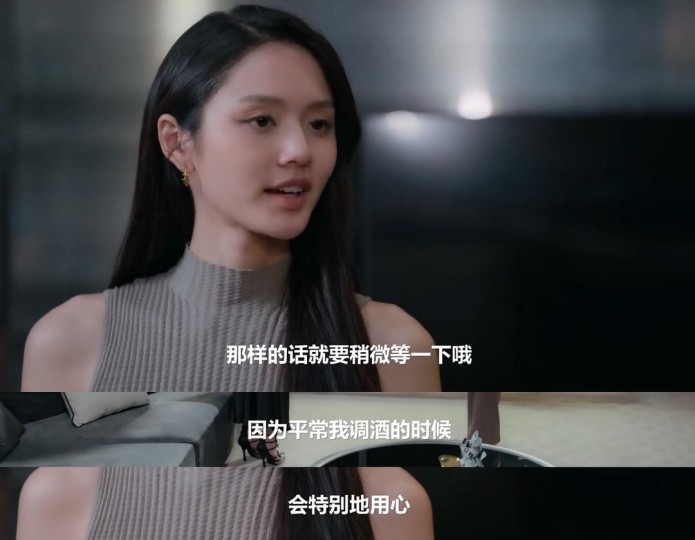 第三步,在家里被Mae支开去调酒之前,Ai明示“我调酒会特别用心”,后面推开卧室门后第一眼瞧的是Mae背后桌上的笔记本电脑,这一切都仿佛在她意料之中。Mae的想法早通过心虚的眼神透露出来,而Ai却按兵不动,可见只要能促成合作,Ai反而会鼓励Mae接近自己。 AI和Mae都坠入了情网,究竟是故意还是不小心,相信后面的剧情会慢慢揭晓答案。 💡 2.制作实力篇:台词、运镜、表演皆上品 前面,笔者用了较多的篇幅分析剧情,这部分便重点赏析《和谐密语》EP2在制作上的精良之处。 台词掷地有声,绝无虚词。在《和谐密语》的故事里,编剧对台词的考究已经到了没有一句是无效台词的地步,笔下的艾美、两位助理通过台词都展现了各自的性格特征与聪明才智。除了塑造人物,这些台词起到的作用还有:Call back营造喜剧效果、对社会议题适当表达态度、多重寓意揭示故事走向等等。