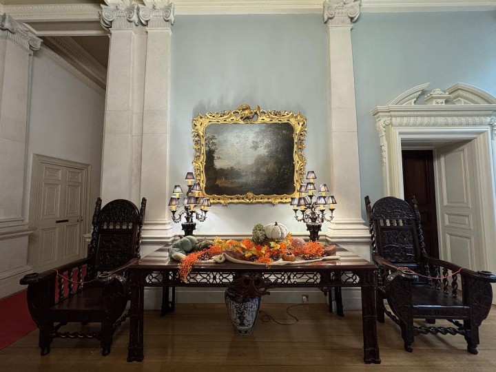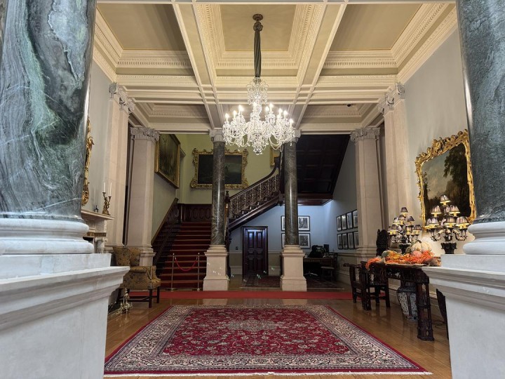 (和剧无关,参观吉尼斯家族的房子后留个小日记) 今天去看了Farmleigh House。讲解员问我们为什么对这个房子感兴趣?我说因为这个剧。她说:“Do not believe a word of <the House of Guiness>, it’s made in UK” 吉尼斯家族当年是爱尔兰和英国首富(因当时没有富豪榜,英国有位船王可以和吉尼斯家族的财富打一打榜一) 爱尔兰因厄尔尼诺现象加剧,今天一直下雨。预约了参观房子,就开来了凤凰公园。到房子门口之前要经过吉尼斯家族之前的马场,现在马场里有一黑一白两只羊驼,一些羊,和有的穿了衣服有的没穿衣服的马。 在房子门口等到了预约时间,大门打开(图4),讲解员走出来把我们领进去。因为这个时间只有我们两个,她打趣:oh, private tour. 一进门她介绍了房子的两部分,一部分是18世纪建的,一部分是17世纪建的。(图5)那个花纹繁复漂亮的椅子有个装置,骗欠债的人坐下后会把欠债的人锁住—不还钱就别走。 画是乔治 巴洛克的作品,画框是洛可可式的。(图6) 图16是Edward的肖像画,当时他们花了9万镑觉得画的很怪很一般。但讲解员觉得这幅画里Edward显得充满智慧。 剧里的植物园居然不是都柏林的植物园,这家人有钱到在自己家搞了一个植物园,有专门的人打理。这院子里的植物有一部分是当年从中国运过来的。 奥巴马,伊丽莎白女王、查尔斯王子和卡米拉…都在此下榻(图8、图9、图17)。 法国版狮身人面的雕塑(图18)