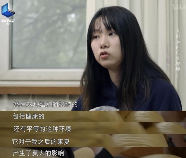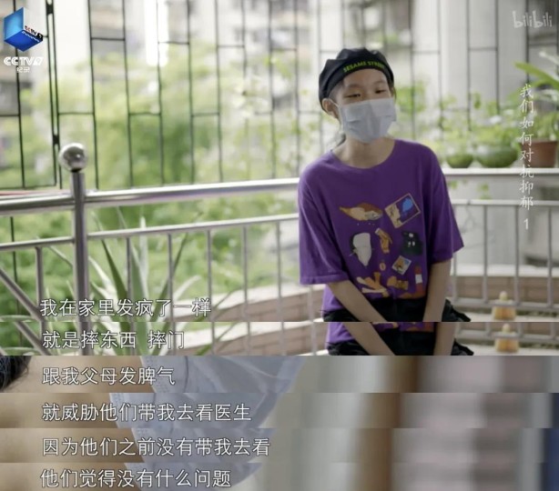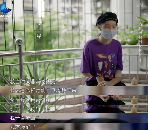 初中生子烨是片中第一个勇敢面对镜头讲述了抑郁经历的孩子。