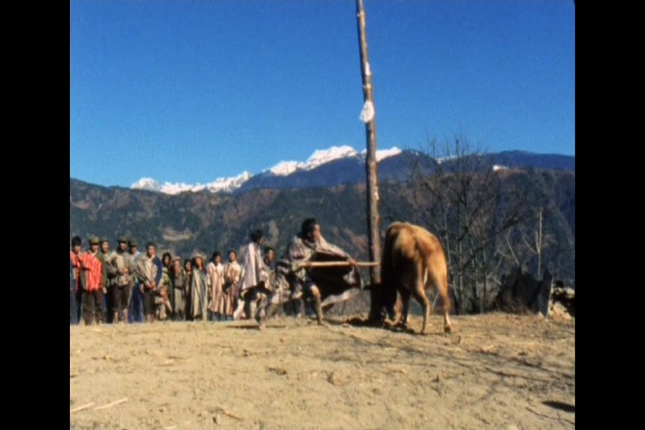 白睿文也有类似讲法,怒江亦是开启“云南作为东南亚”的一类片子。《怒江》有很深的人类学影像调子,但内部与吕乐创作是有脉络沿袭。它上承第五代《红象》,下到田壮壮的《德拉姆》,吕乐自己的《美人草》西南故事等。它们背后的背后,还有中国文学与电影在云南六河的聚焦放大。 算下来,《怒江》也是吕乐替严浩《天菩萨》摄影后,我接连又看到的吕作品。电影从导演本人的画外口白,带出摄制组行动线路。大致按照海拔落差,地理江流的自上而下,沿两岸河谷,记录怒族、独龙族、傈僳族以及一小支不知为何会在怒江河谷生活的彝族人习俗,呈现了这些族群的婚礼、祈拜、占卜、盖屋、刀耕火种、集市赶街和欢度节庆,没有多余的修辞和拔擢。部分镜头,也比今日观众想象的,要赤裸,直狠。